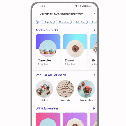 In native apps, we can see some animations that look very smooth as like the one shown below. These animations often begin and end using the same UI elements as transitions. This allows us to clearly see the elements changing shape, size, or position, rather than simply hiding one element and showing another. In Android development, this type of animation is called a shared element transition.